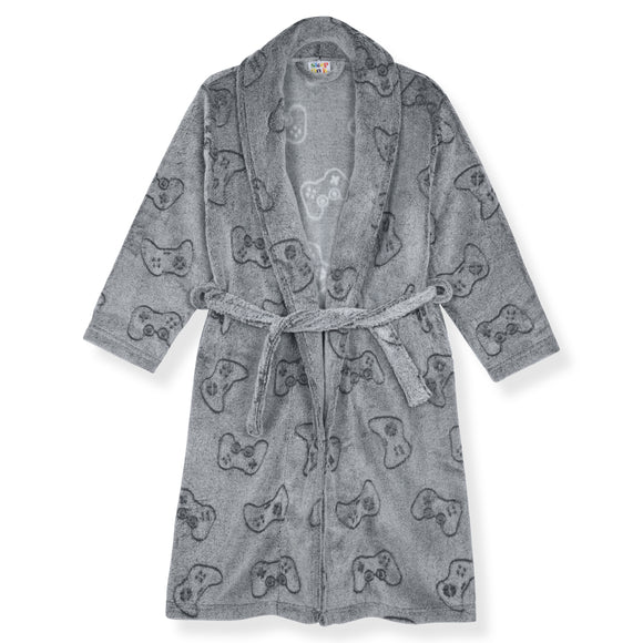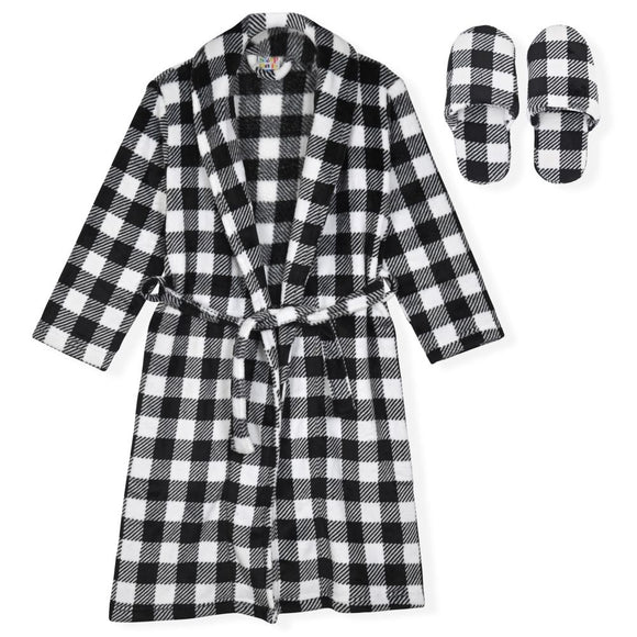 Sleep On It Boys Plush Flannel Fleece Collar Robe Set with Matching Slippers - Thunderbolt