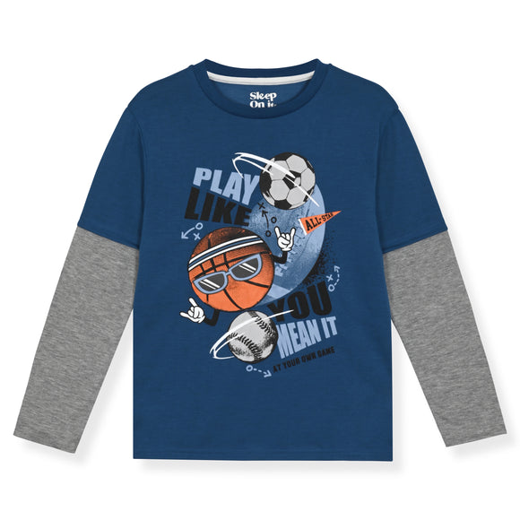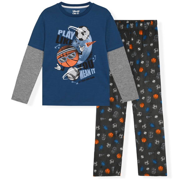 Sleep On It Boys 2-Piece Super Soft Jersey Long Sleeve Snug-Fit Pajama Set - Baseball