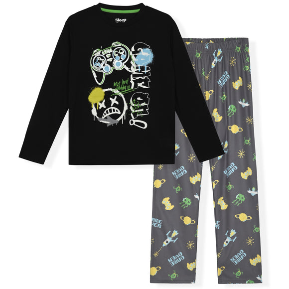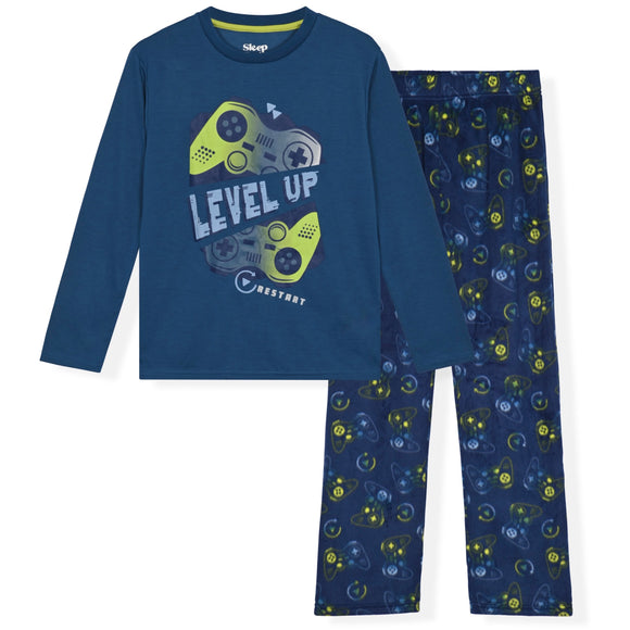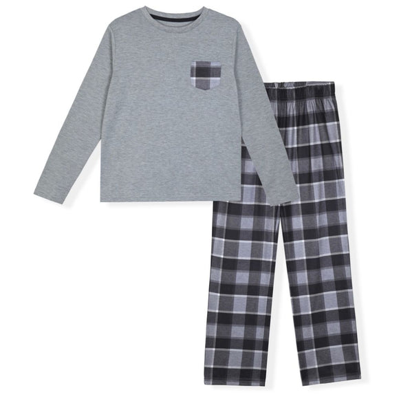 Sleep On It Boys 2-Piece Hacci Pajama Set – Long Sleeve Top and Jogger Pants - Checkerboard