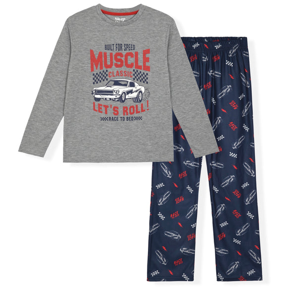 Sleep On It Boys 2-Piece Super Soft Jersey Long Sleeve Snug-Fit Pajama Set - Race Cars