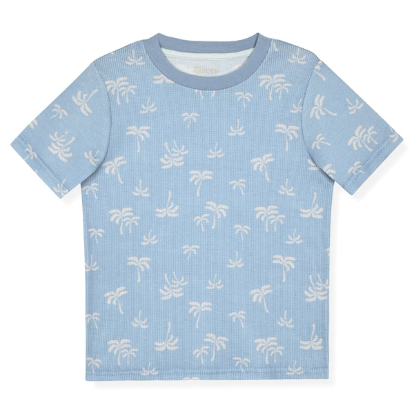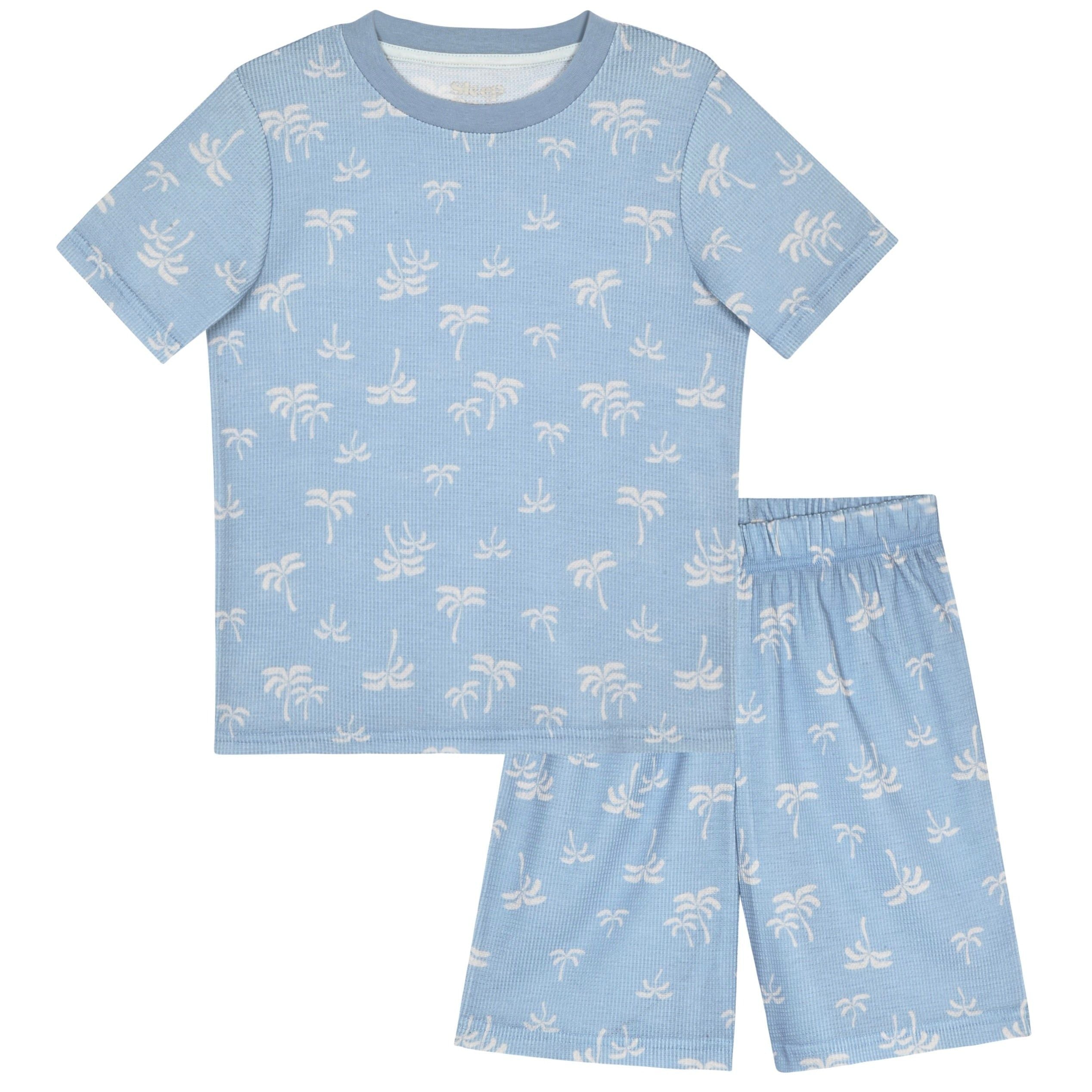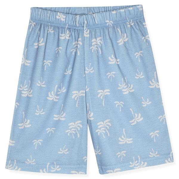 Sleep On It Boys 2Pc Waffle Thermal Pajama Shorts Set - Palm Trees