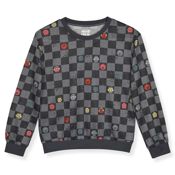 Sleep On It Boys 2-Piece Hacci Pajama Set – Long Sleeve Top and Jogger Pants - Checkerboard
