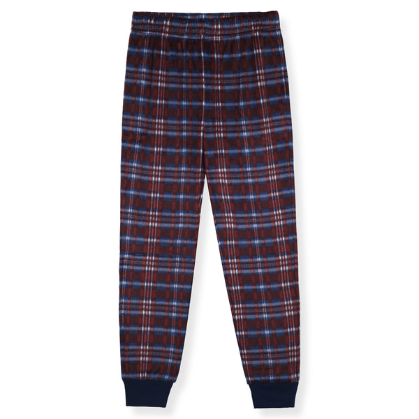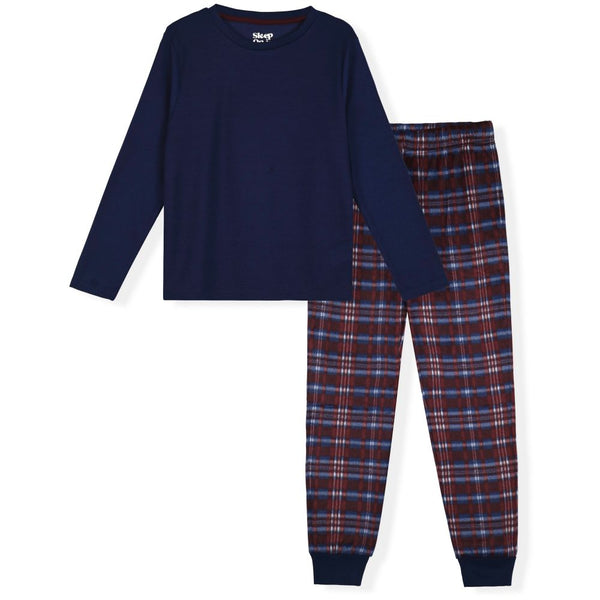 Sleep On It Boys 2-Piece Long Sleeve Pajama Set with Fleece Plaid Pants - Navy