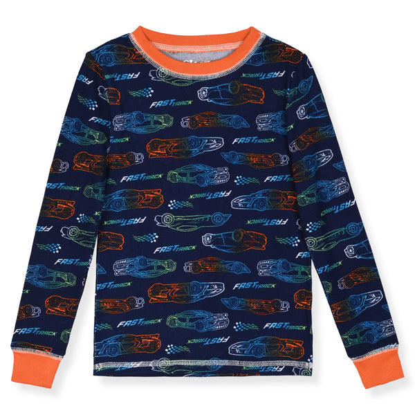 Sleep On It Boys 2-Piece Super Soft Jersey Long Sleeve Snug-Fit Pajama Set - Race Cars