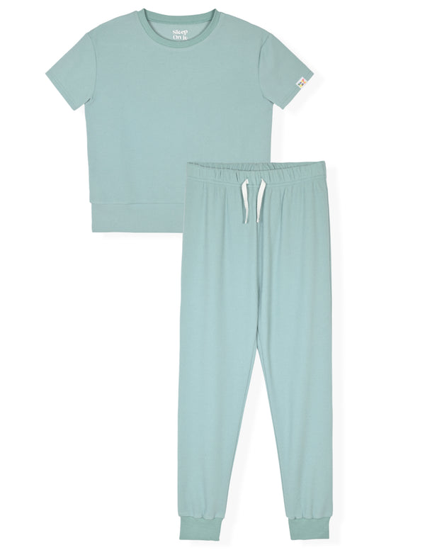 Sleep On It Boys 2-Piece Textured Jersey Short-Sleeve Jersey Pajama Pants Set - Green