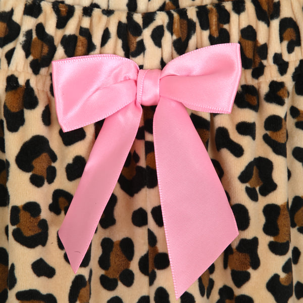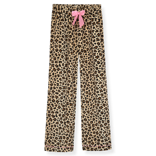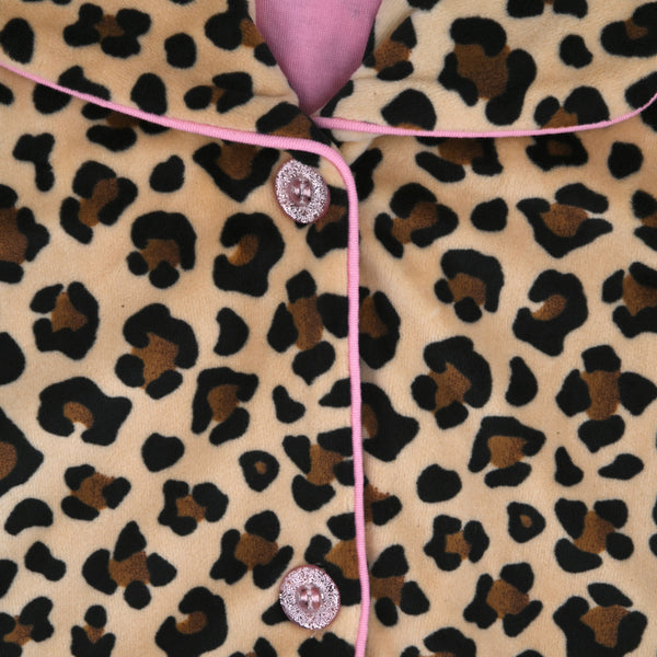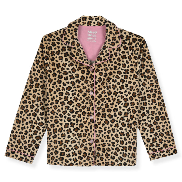 Sleep On It Girls 2-Piece Long-Sleeve Button-Up Pajama Set with Plush Headband Gift, Cheetah