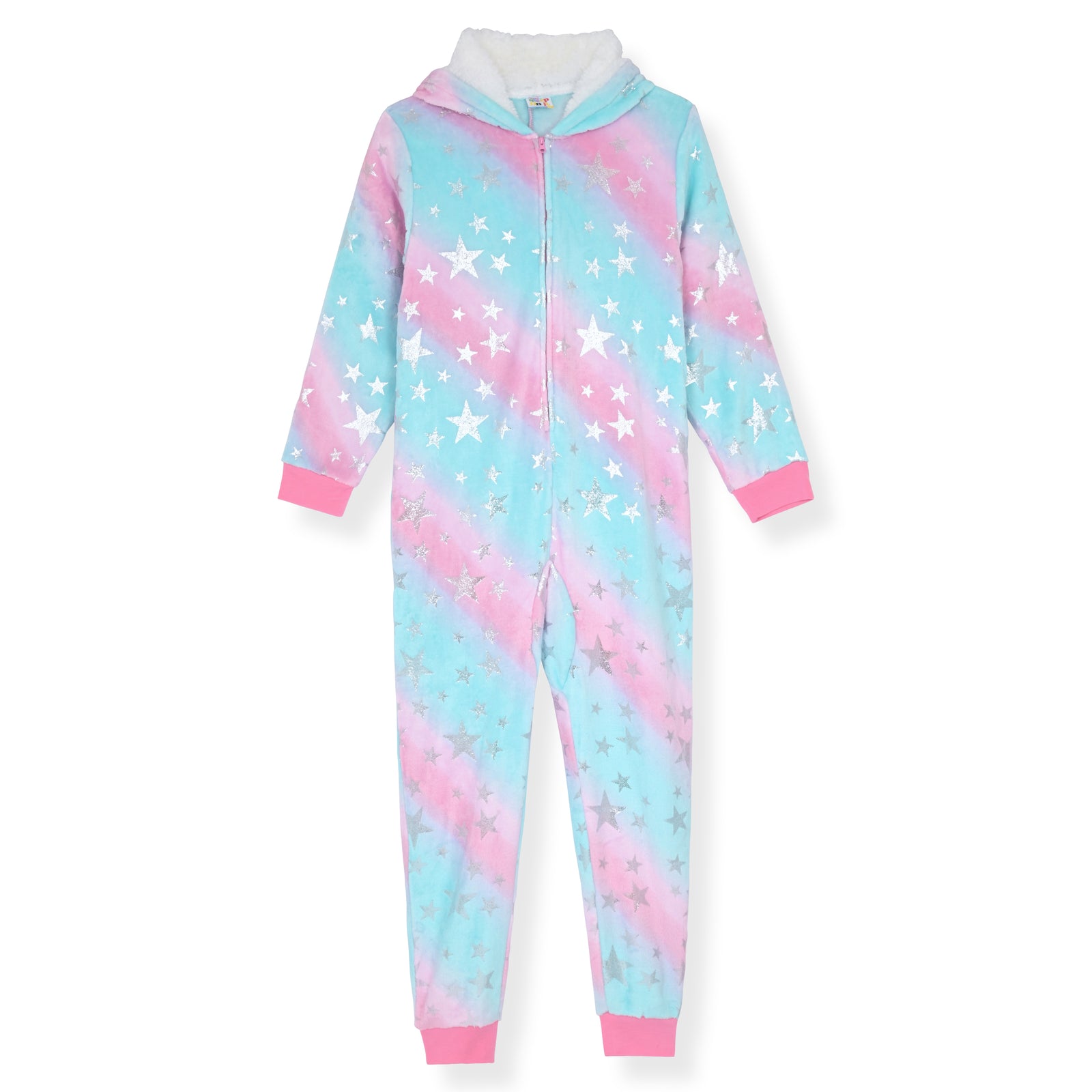 Sleep On It Girls 2-Piece Long-Sleeve Button-Up Pajama Set with Plush Headband Gift, Starry