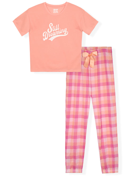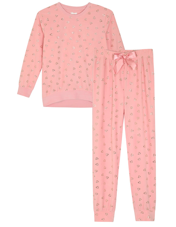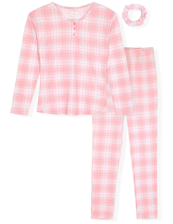Sleep On It Girls 2-Piece Long-Sleeve Button-Up Pajama Set with Plush Headband Gift, Big Bows