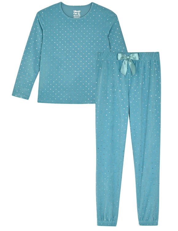 Sleep On It Girls 2-Piece Long-Sleeve Button-Up Pajama Set with Plush Headband Gift, Starry