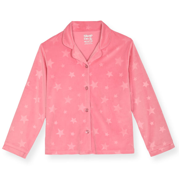 Sleep On It Girls 2-Piece Long-Sleeve Button-Up Pajama Set with Plush Headband Gift, Pink Stars