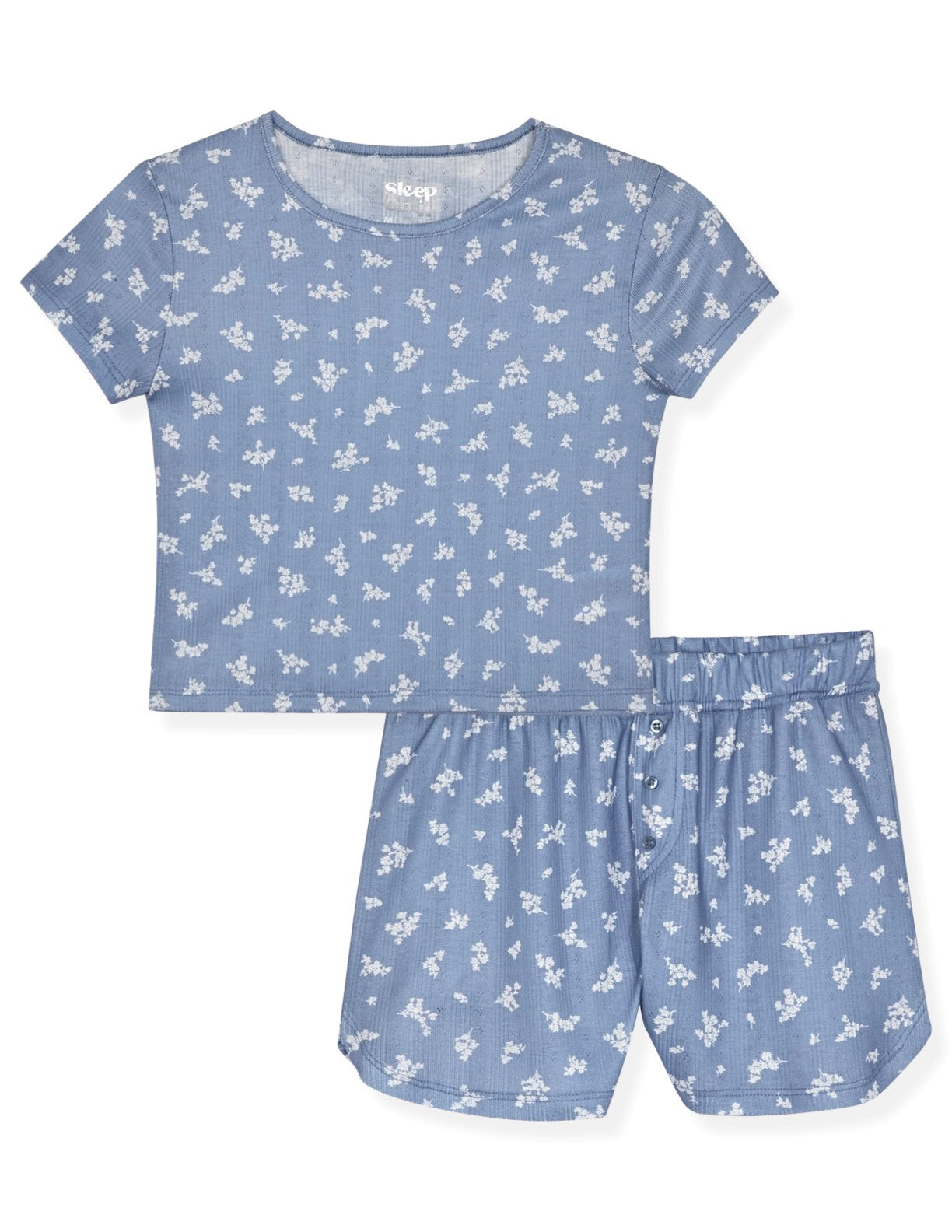 Sleep On It Girls 2-Piece Short-Sleeve Button Down Collared Coat Pajama Set with Matching Scrunchie - Butterfly