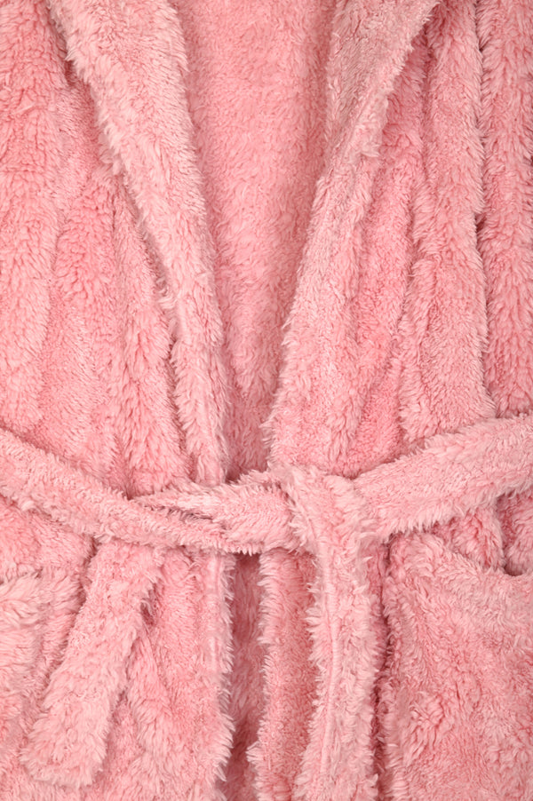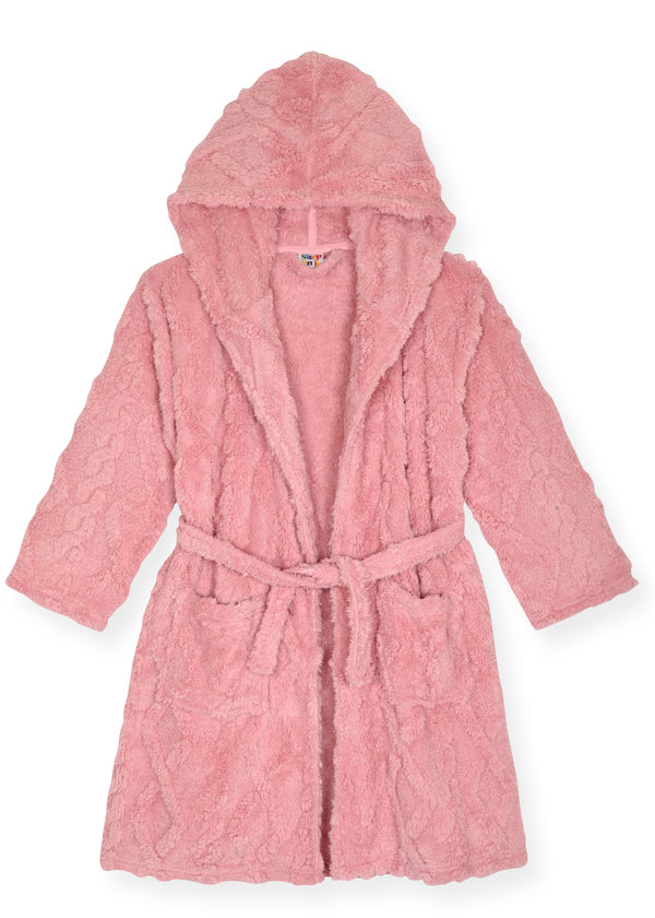 Sleep On It Girls Hooded Cable Fleece Collar Robe Set - Cable Knit