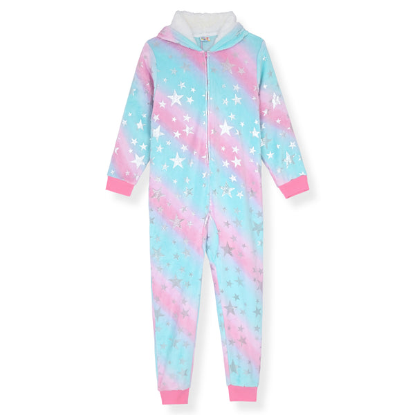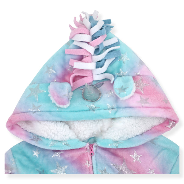 Sleep On It Girls Long-Sleeved Zip-Up Hooded Sleeper Pajama - Unicorn Stars