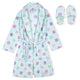 Available in sizes 7–16, this girls' fleece robe and slipper set is a must-have for cooler weather, sleepovers, and gift-giving seasons like birthdays and holidays.