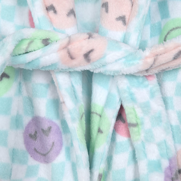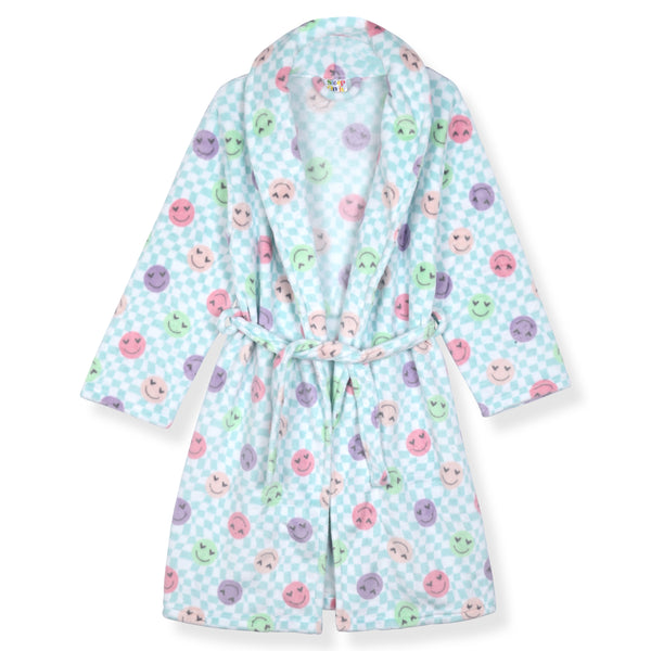 Sleep On It Girls Plush Flannel Fleece Collar Robe Set with Matching Slippers - Smiley