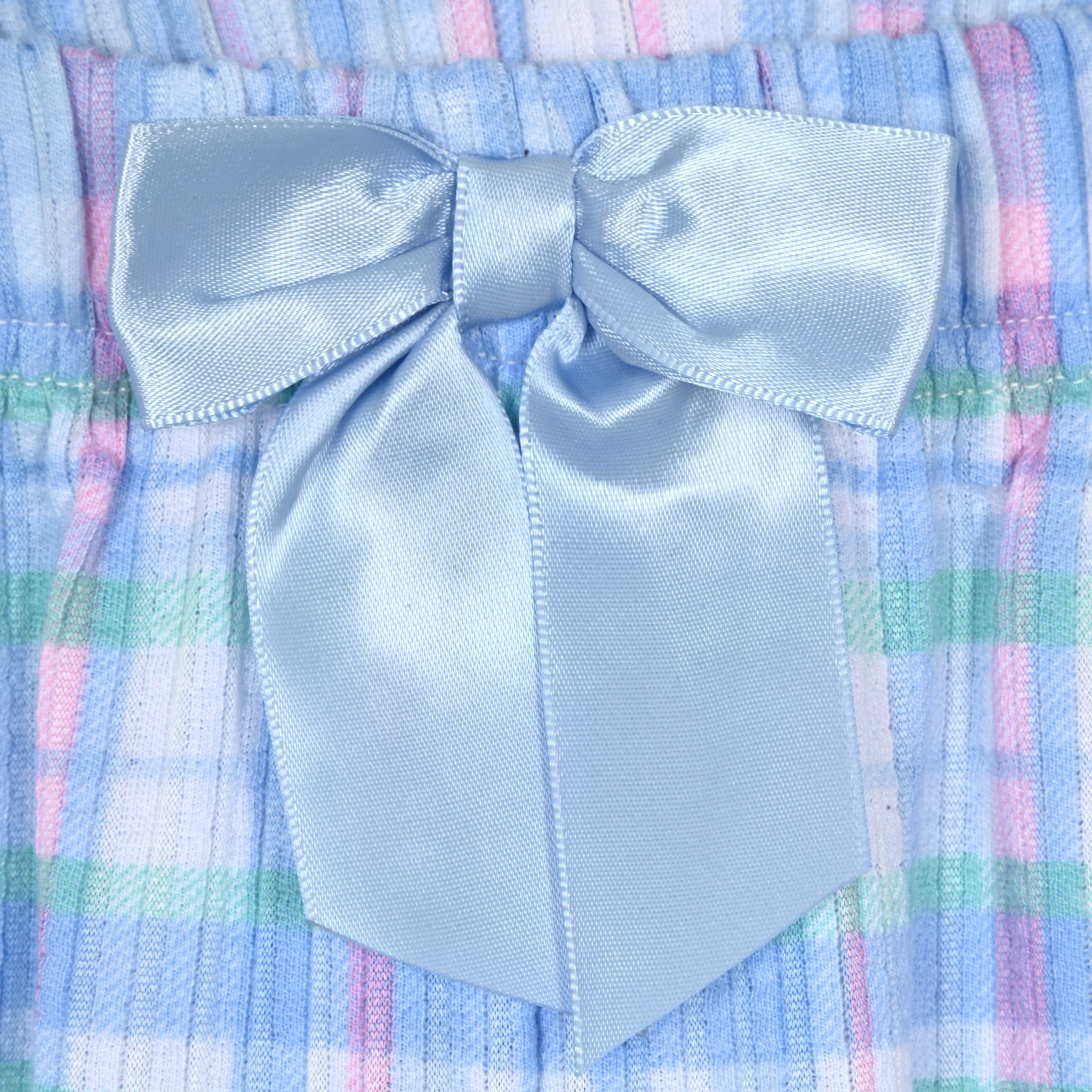 Make bedtime stylish and comfy with this 2-piece plaid pajama set for girls. The set features a trendy drop-shoulder short-sleeve top with a playful screen print, perfect for inspiring sweet dreams. Paired with cozy plaid pants, this set offers ultimate comfort and cuteness. The pants include an elastic waistband with a bow detail, ensuring a snug yet flexible fit. Crafted with soft and lightweight jersey, this set is breathable and flame-resistant, keeping your child safe and comfy all night long.