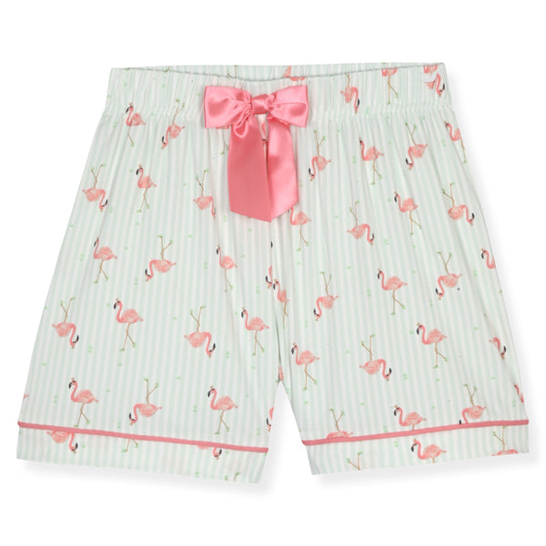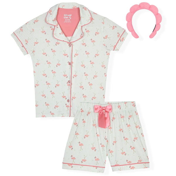 Sleep On It Girls Yummy Jersey Coat Front Pajama Short Set - Flamingo