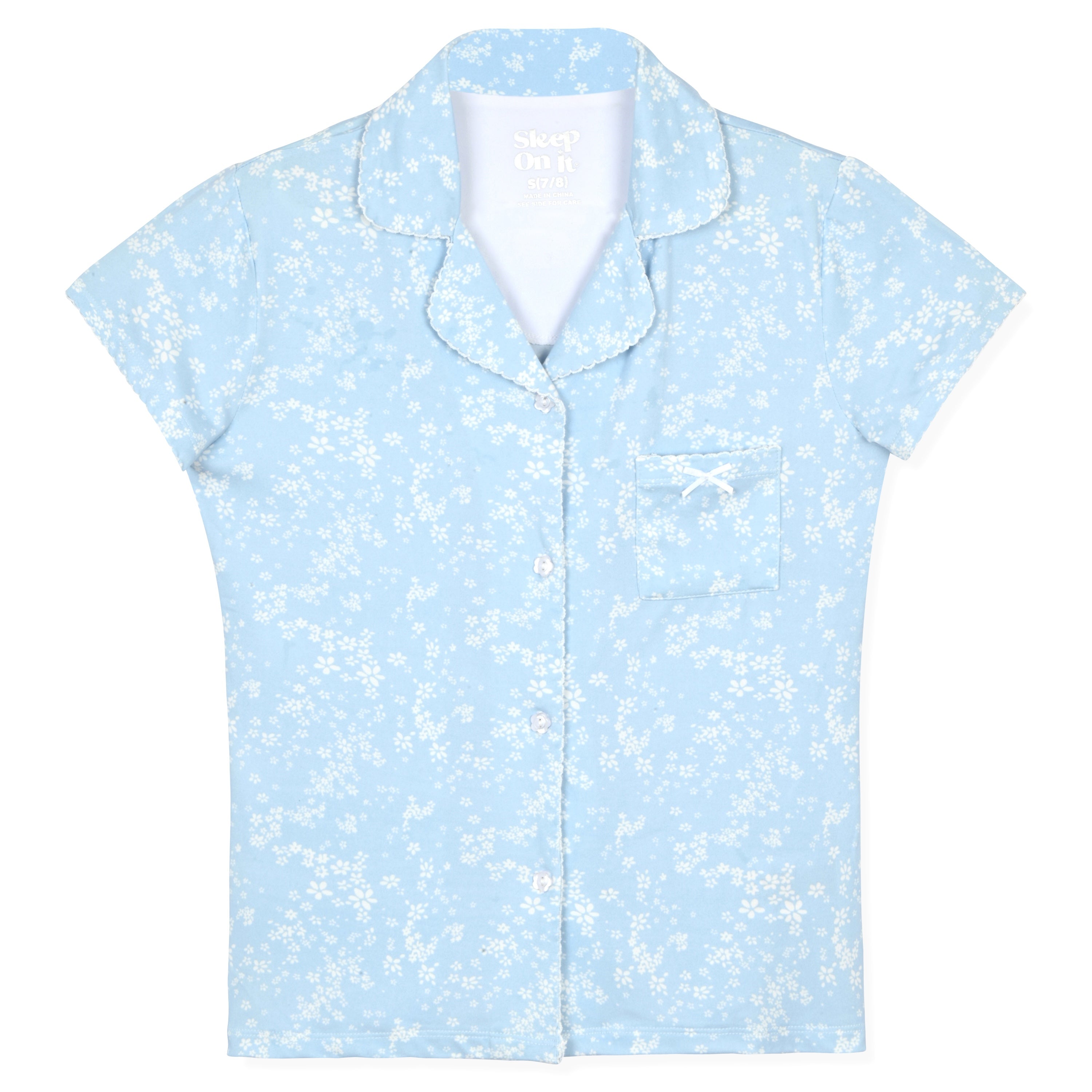 Drift into dreamy comfort with the Sleep On It Girls' 2-Piece Milky Jersey Pajama Set. Crafted from ultra-soft and silky milky jersey fabric, this set features a short-sleeve button-up pajama top and matching pajama pants, offering a cozy yet stylish bedtime look. Each set comes with a coordinating scrunchie, adding a fun and practical accessory to complete the ensemble. Designed with beautiful patterns like pastel foils, classic stripes, and delicate florals, this pajama set is perfect for relaxing in comfort and style !