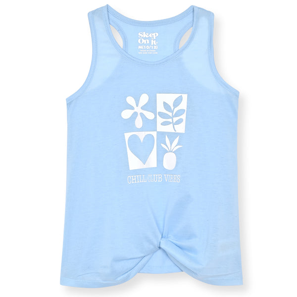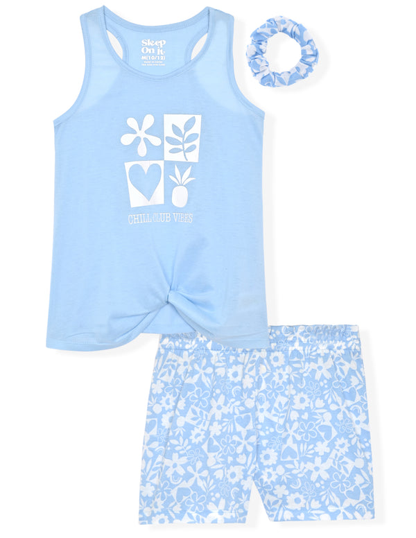 Sleep On It Girls 2-Piece Sleeveless Tank-Top Jersey Pajama Shorts Set with Matching Hair Scrunchie - Chill Club