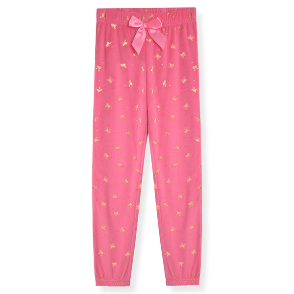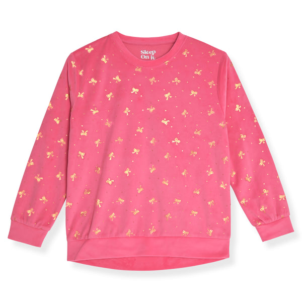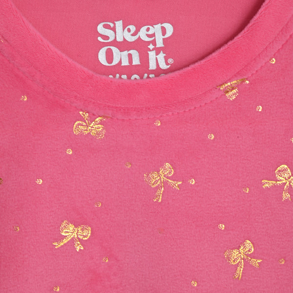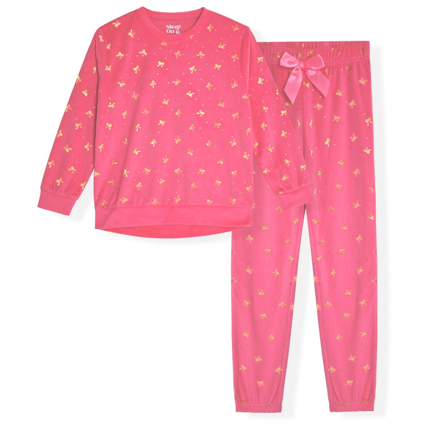 Sleep On It Girls Long-Sleeved 2-Piece Velour Pajama Pant Sleep Set - Golden Bows