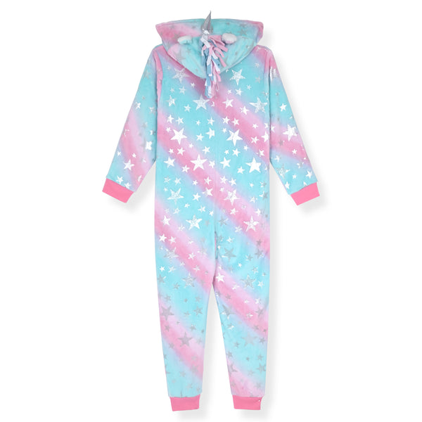 Sleep On It Girls Long-Sleeved Zip-Up Hooded Sleeper Pajama - Unicorn Stars