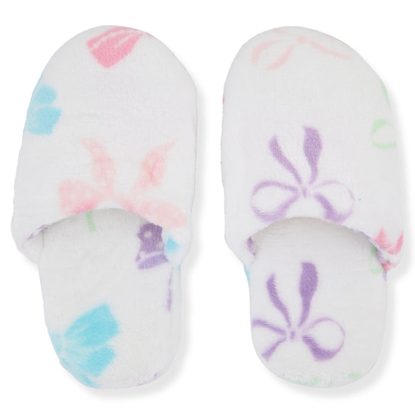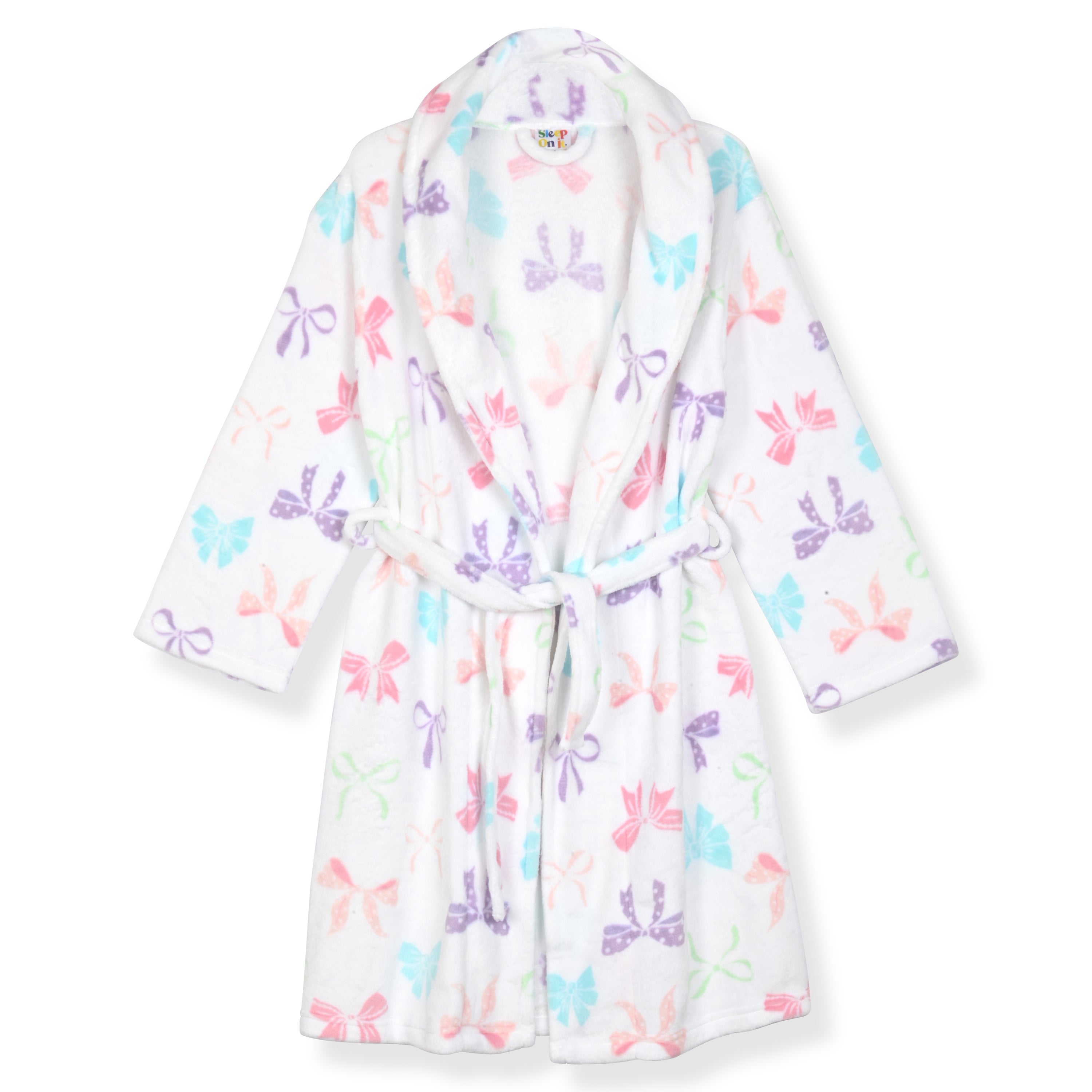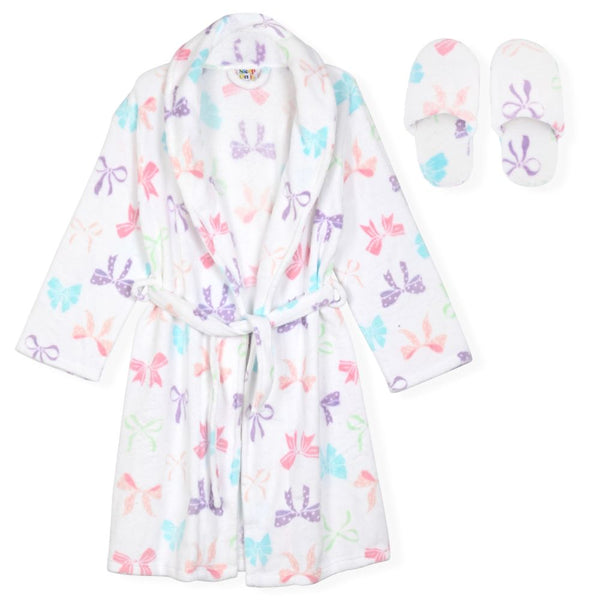 Sleep On It Girls Plush Flannel Fleece Collar Robe Set with Matching Slippers - Bows