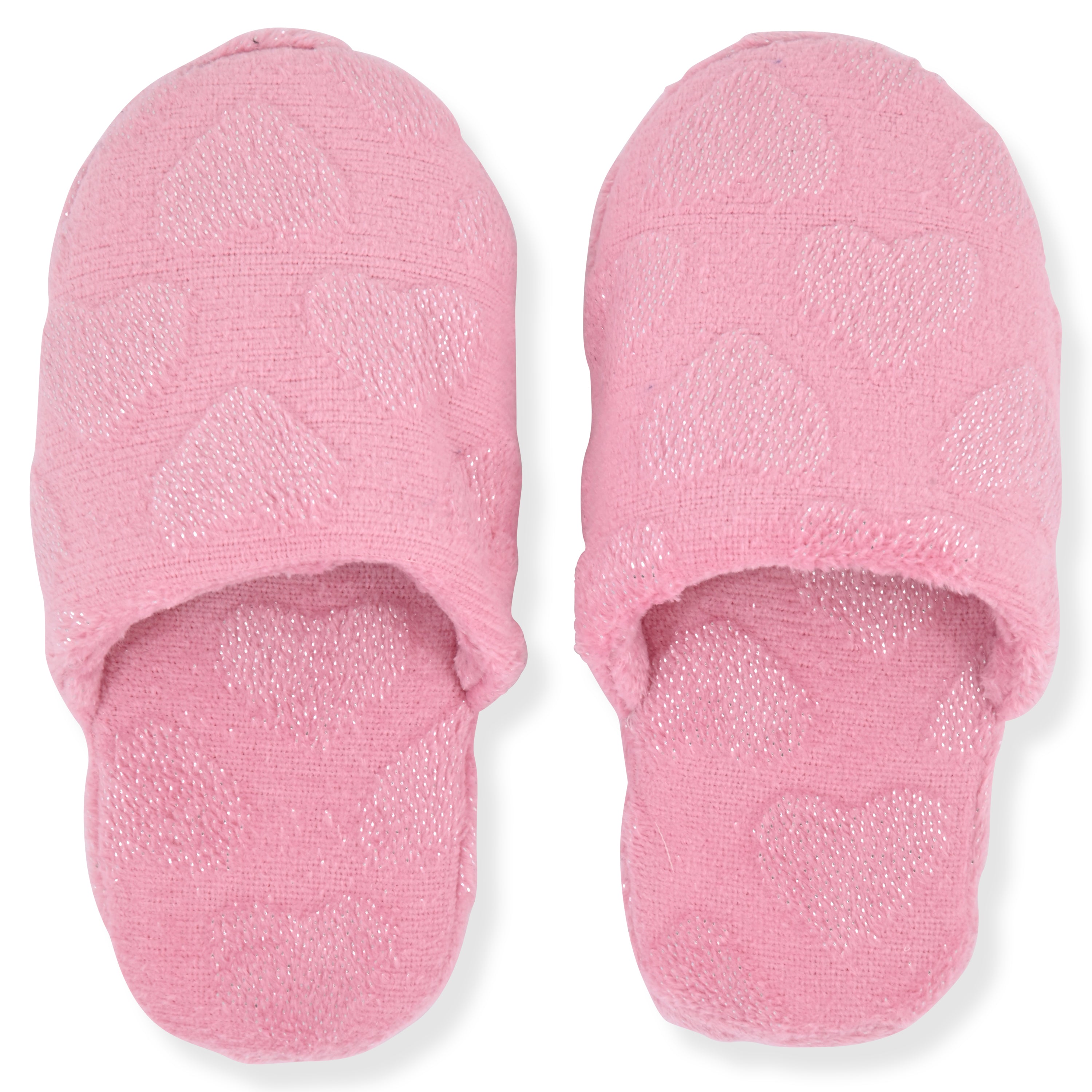 Sleep On It Girls Plush Flannel Fleece Collar Robe Set with Matching Slippers - Hearts