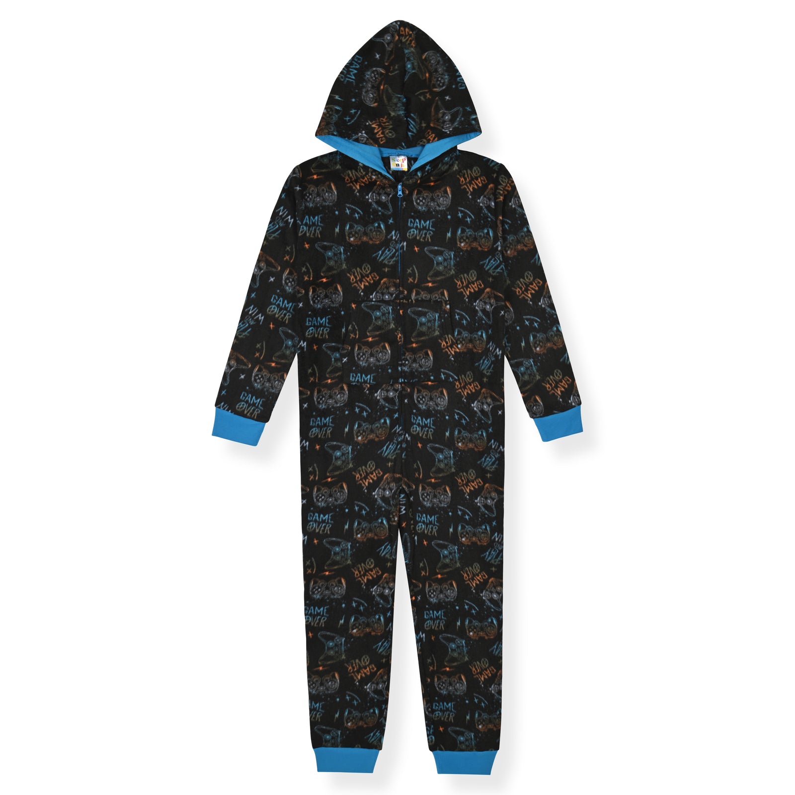 Sleep On It Boys Long-Sleeved Zip-Up Hooded Sleeper Pajama - Game Over
