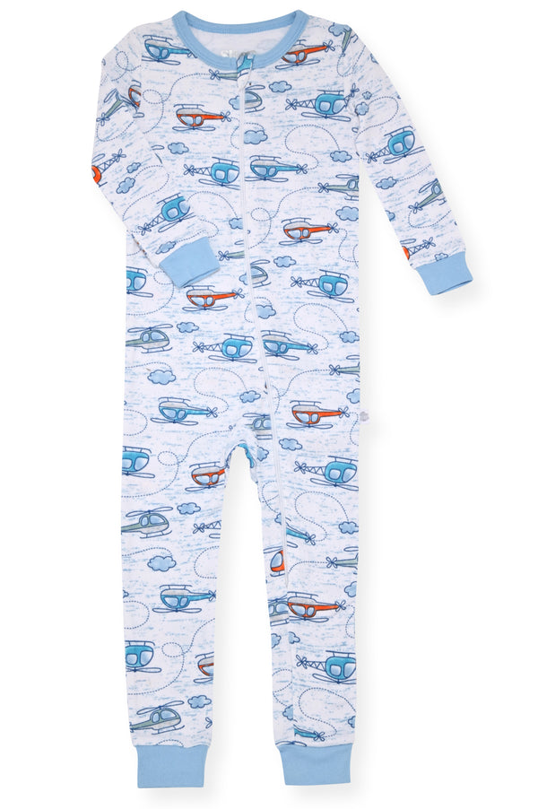 Sleep On It Infant Boys Long Sleeve Super Soft Snuggle Jersey Zip-Up Coverall Pajama with Matching Blankey Buddy - Choppers