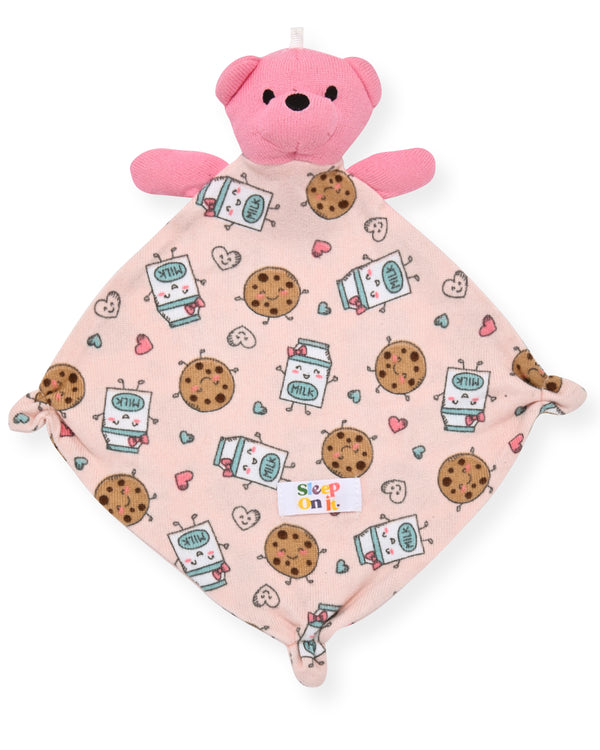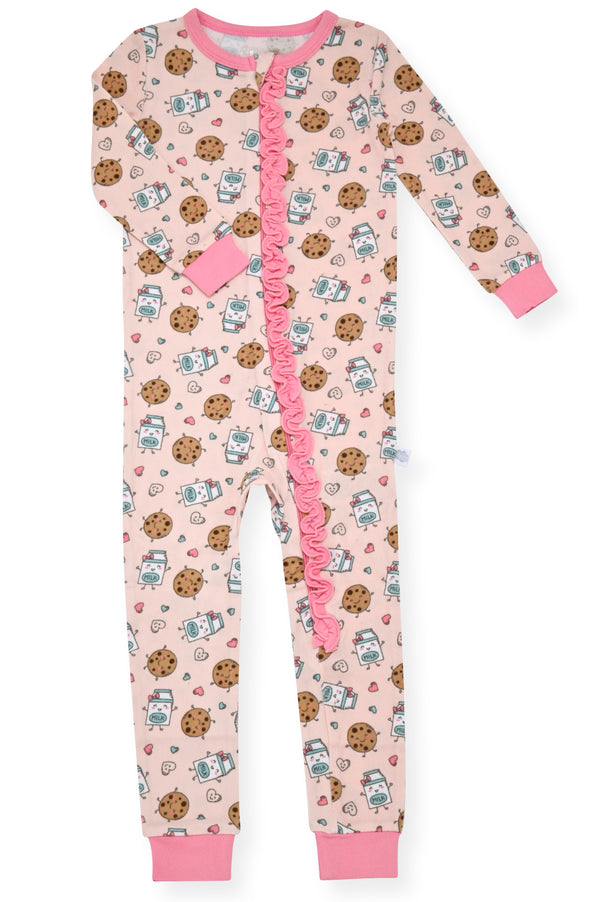 Sleep On It Infant Girls Long Sleeve Super Soft Snuggle Jersey Zip-Up Coverall Pajama with Matching Blankey Buddy - Milk & Cookies