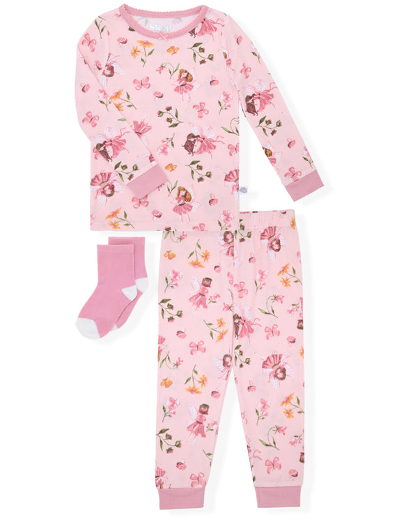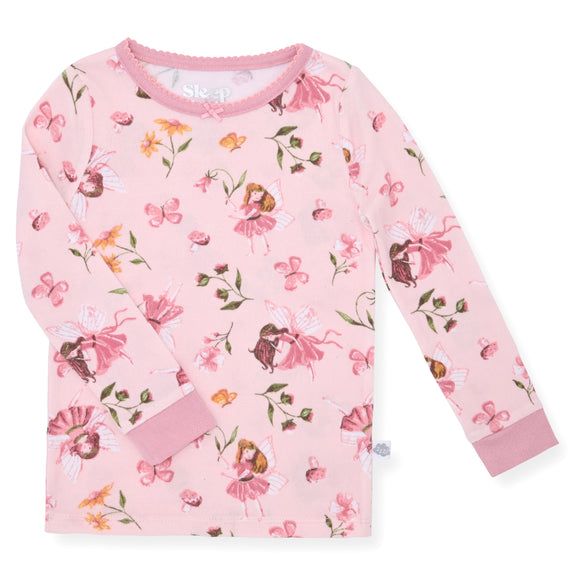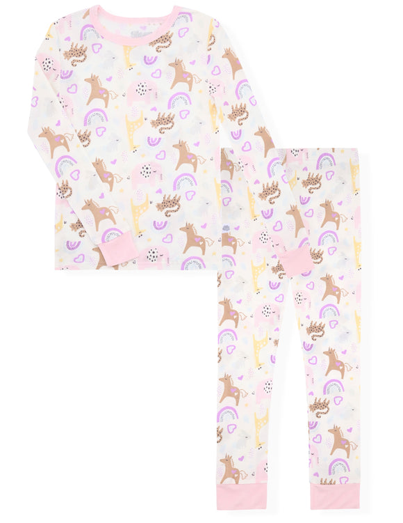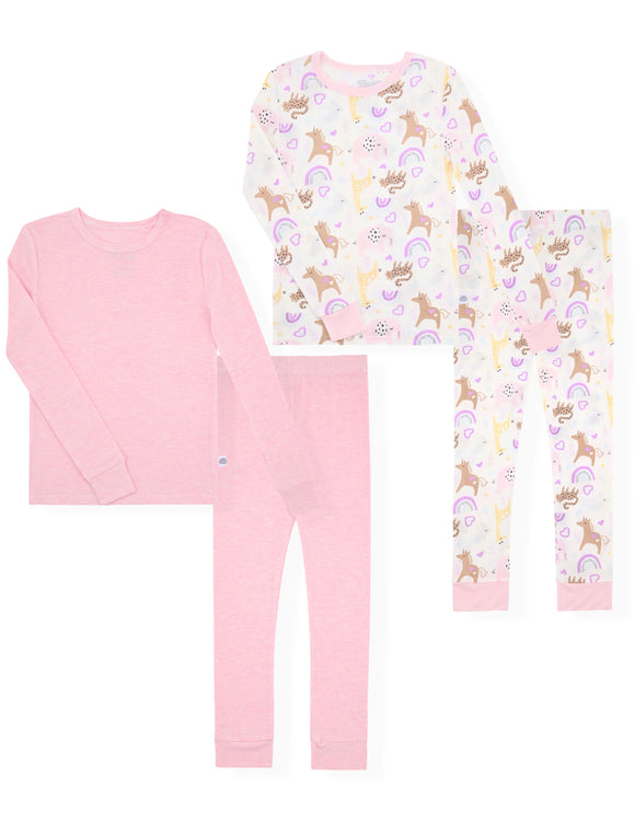 Sleep On It Girls 2-Piece Super Soft Jersey Long Sleeve Snug-Fit Pajama Set - Ballerina