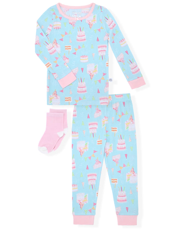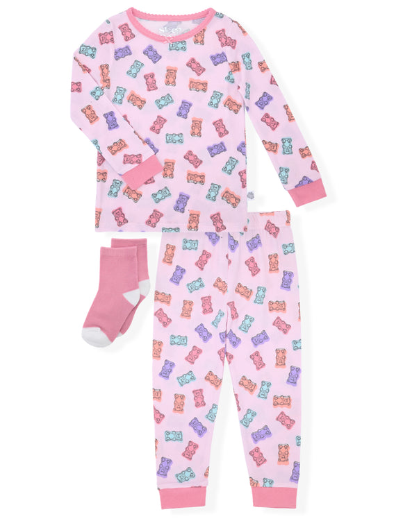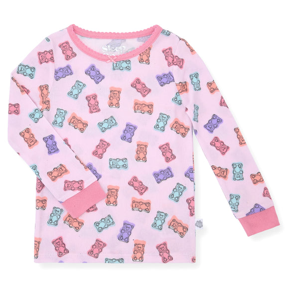 Sleep On It Girls 2-Piece Super Soft Jersey Long Sleeve Snug-Fit Pajama Set for Toddlers & Girls with Scrunchie - Sweets