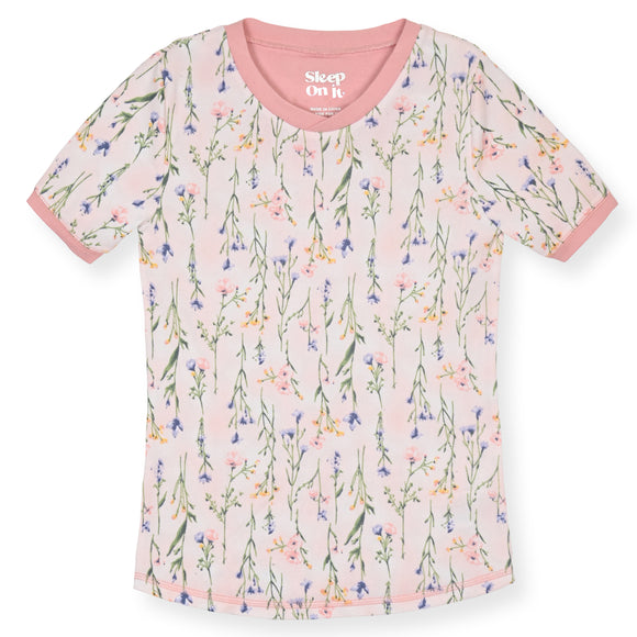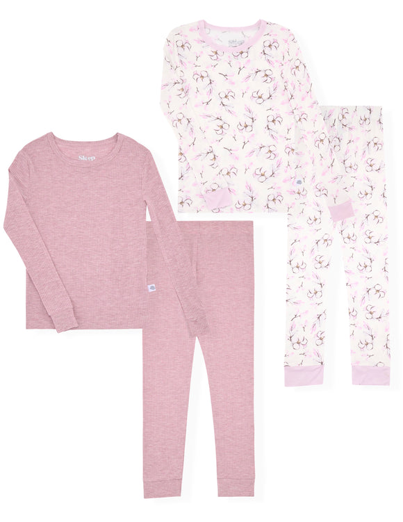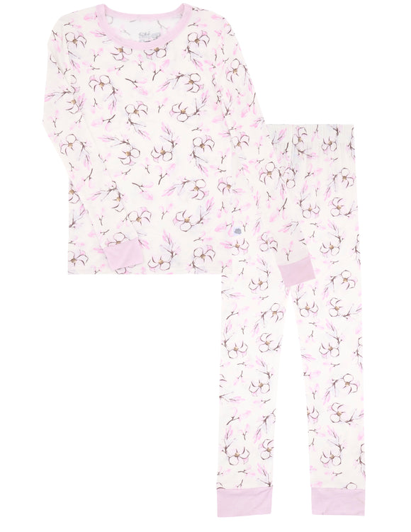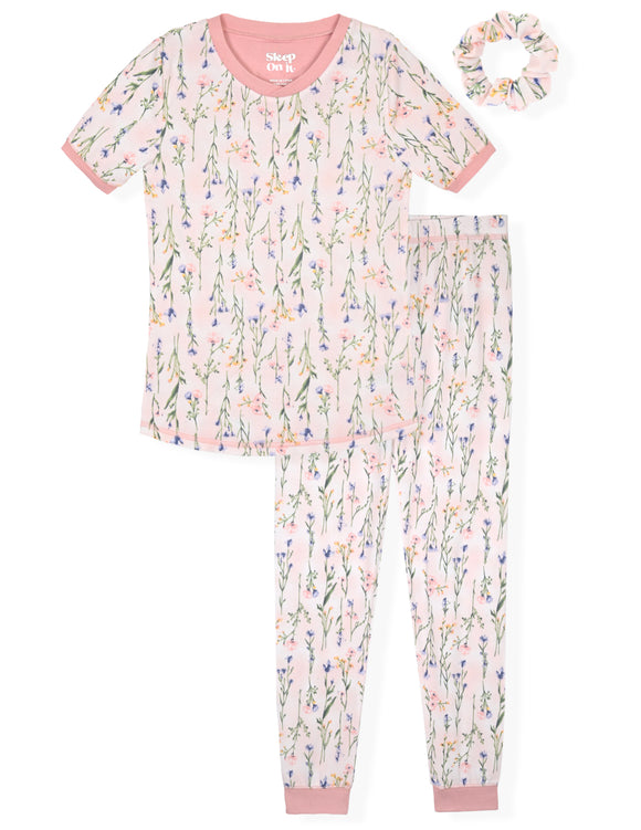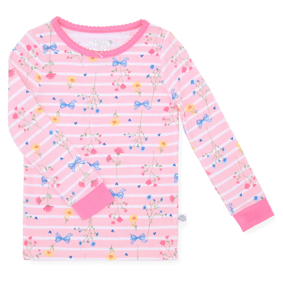 Sleep On It Girls 2-Piece Super Soft Jersey Long Sleeve Snug-Fit Pajama Set - Flowers