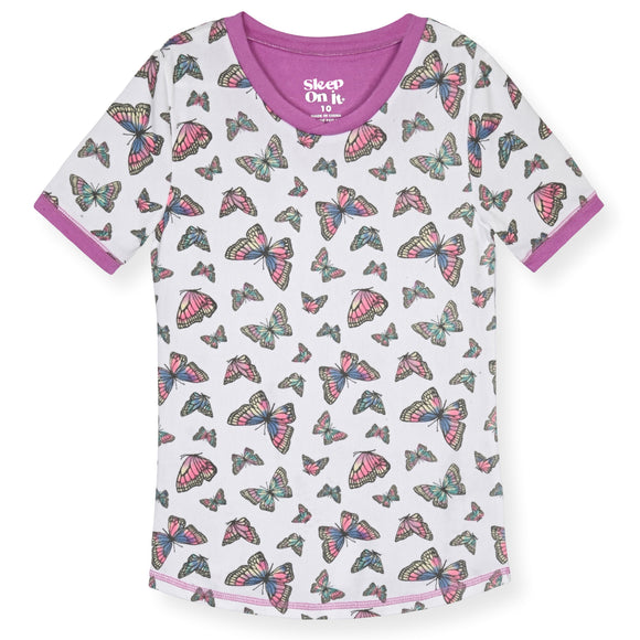 Sleep On It Girls 2-Piece Super Soft Jersey Long Sleeve Snug-Fit Pajama Set for Toddlers & Girls with Scrunchie - Butterfly