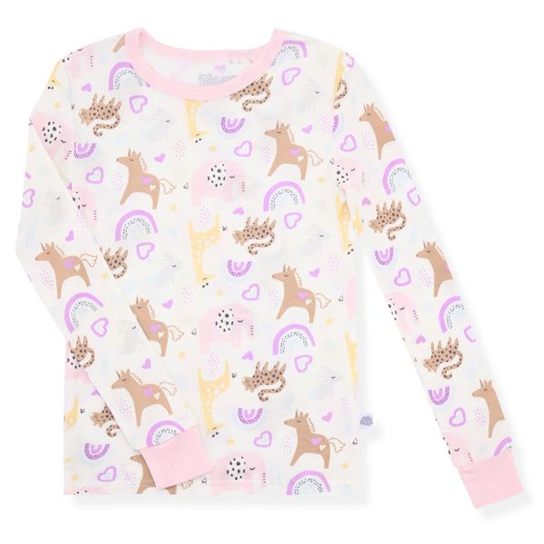 Sleep On It Girls Bamboo Viscoce 2-Piece Snug Fit Pajama Set (2-Pack) - Animal Icon
