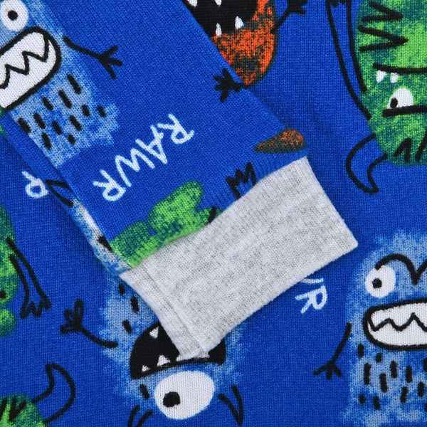 Things are about to get wild, so hold onto your nightcap's parents, because Sleep On It has been on the prowl to create the perfect baby pajamas for boys and will have your little prince pouncing into bed in no time. These infant and toddler pajamas feature plush fabrics, vibrant colors, and Sleep On It's signature snuggle-worthy comfort, making it a must-have in any baby pajama collection. The boy's baby pajama sets is made from snuggle jersey, a material known for being plush and stretchable. Some say it's really mushy! However, what makes this material a winner, especially during the warmer seasons of the year, is its breathability and moisture-wicking properties. This ensures your child doesn't begin to sweat and remains cool and comfortable throughout the night. Furthermore, the boy's baby pajama set features a round neck, long-sleeved top along with long pajama pants for infants and toddlers that have an elastic waistband, providing a secure and comfortable fit throughout the night. The cherry on top is the addition of the adorable matching socks that perfectly compliment the set. However, it's the all-over prints that steals the show. Whimsy prints, bright colors, and oh-so-stylish designs light on contrasting bright or soft bases make the prints pop. Moreover, the incorporation of a vibrant hue in contrasting areas such as the neckline, leg hems, and sleeves adds a touch of flair to the baby pajama set for boys. Now that you know, there's really only one thing left to do. Add this boy's baby pajama set to your cart so your little one can enjoy the perfect blend of comfort and style with Sleep On It's infant pajama set !