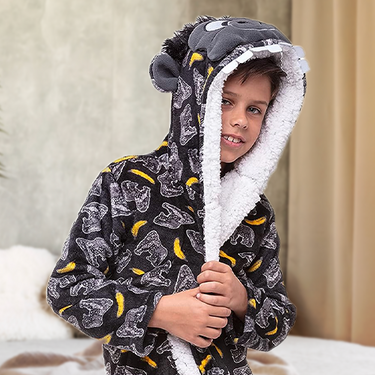 Boys Camo Dino Zip-Up Hooded Sleeper Pajama with Built Up 3D Character Hood