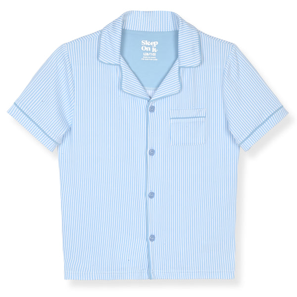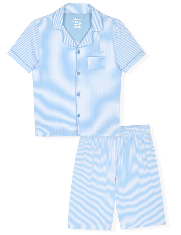 Sleep On It Boys 2-Piece Milky Jersey Short-Sleeve Button Down Coat Pajama Set - Stripe , 3T