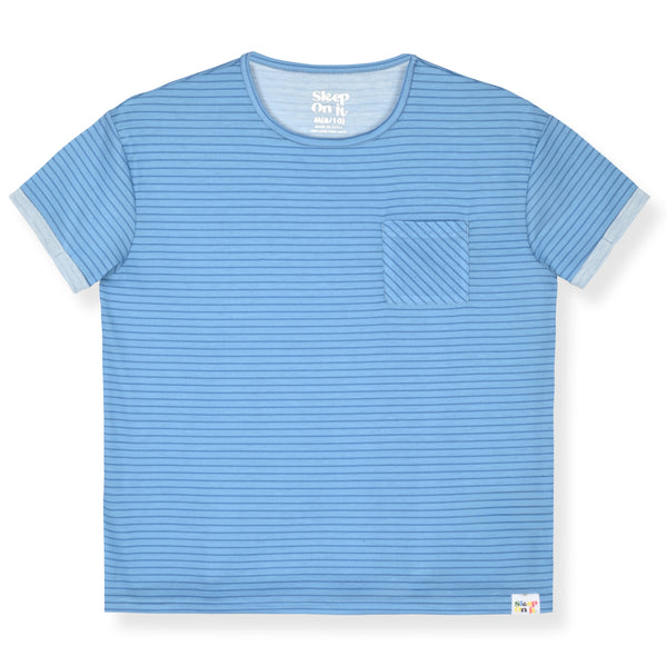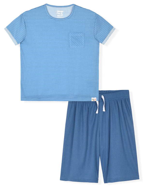 Sleep On It Boys 2-Piece Pajama Set - Short-Sleeve Jersey Tee and Waffle Thermal Shorts - Blue Stripe