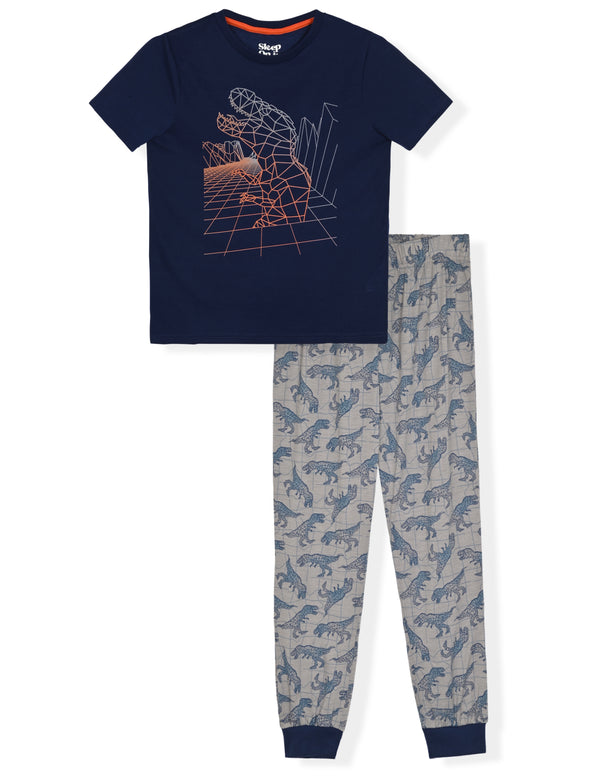 Are you ready to rev up the fun at bedtime? Because with Sleep On It's trendiest collections, your little one will be all set with some stylish comfort that will have them snooze off into dreamland faster than ever before. We, at Sleep On It, believe that bedtime must be filled with the best of dreams, tons of snuggles, but above all, the comfiest boy's pajama set possible. That's why we continuously strive to push the boundaries with fabrics we use to redefine bedtime bliss, so the tiny little humans can sleep through the night in peace. The pajama set for boys is made from super soft jersey, a fabric known for its breathability, softness, and stretchiness. This makes it perfect for the spring and summer, as your child receives proper air circulation and won't begin sweating throughout the night. However, what makes this boy's pajama set a must-have in every kid's pajama collection is its fun print. The short-sleeved top features a cool design and the jogger style boy's pajama pants feature an all-over print, perfectly complimenting the top. Now that you know, it's time to ready, set, and start shopping because this is one set you aren't going to want to miss out on !