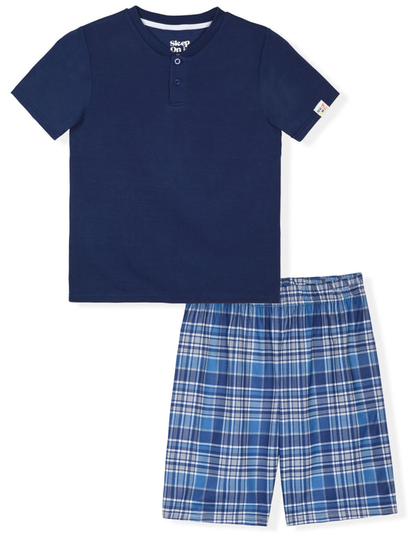 Sleep On It Boys 2-Piece Short-Sleeve Jersey Pajama Shorts Set - Plaid