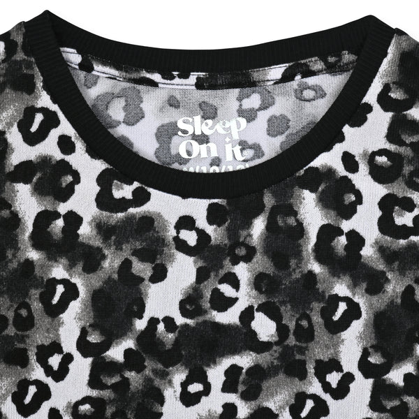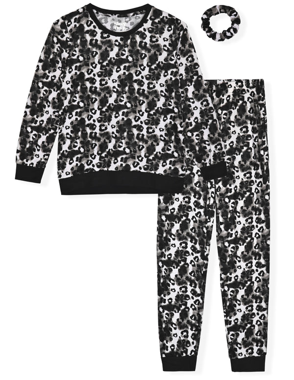 Sleep On It Girls 2-Piece Hacci Pajama Set with Matching Scrunchie - Cheetah