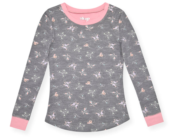 Sleep On It Girls 2-Piece Super Soft Jersey Long Sleeve Snug-Fit Pajama Set for Toddlers & Girls with Scrunchie - Butterfly