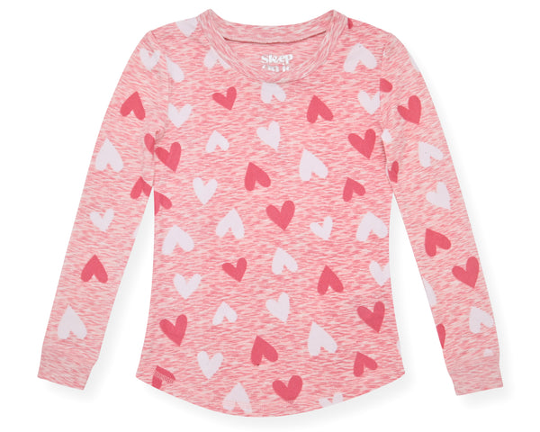 Sleep On It Girls 2-Piece Super Soft Jersey Long Sleeve Snug-Fit Pajama Set for Toddlers & Girls with Scrunchie - Hearts