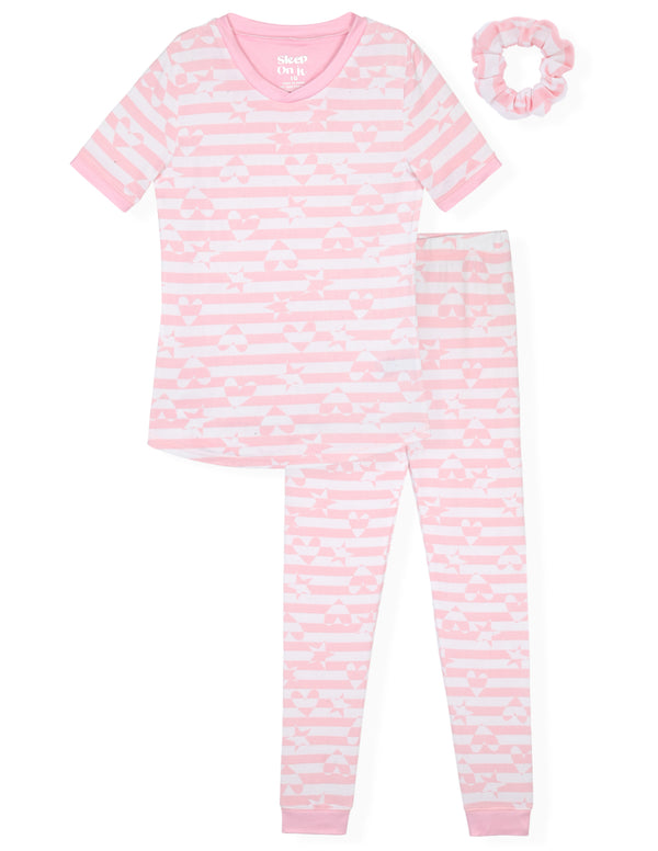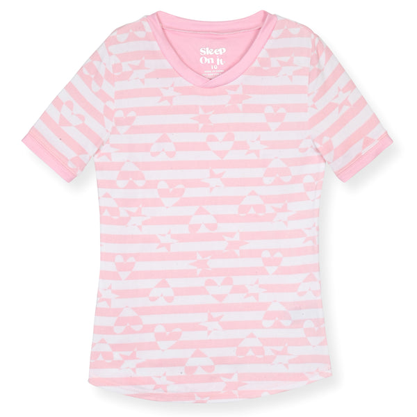 Sleep On It Girls 2-Piece Super Soft Jersey Snug-Fit Pajama Set - Love Stripe