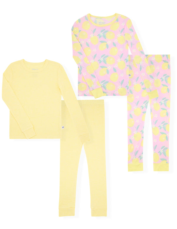 Sleep On It Girls Bamboo Viscoce 2-Piece Snug Fit Pajama Set (2-Pack) - Lemon