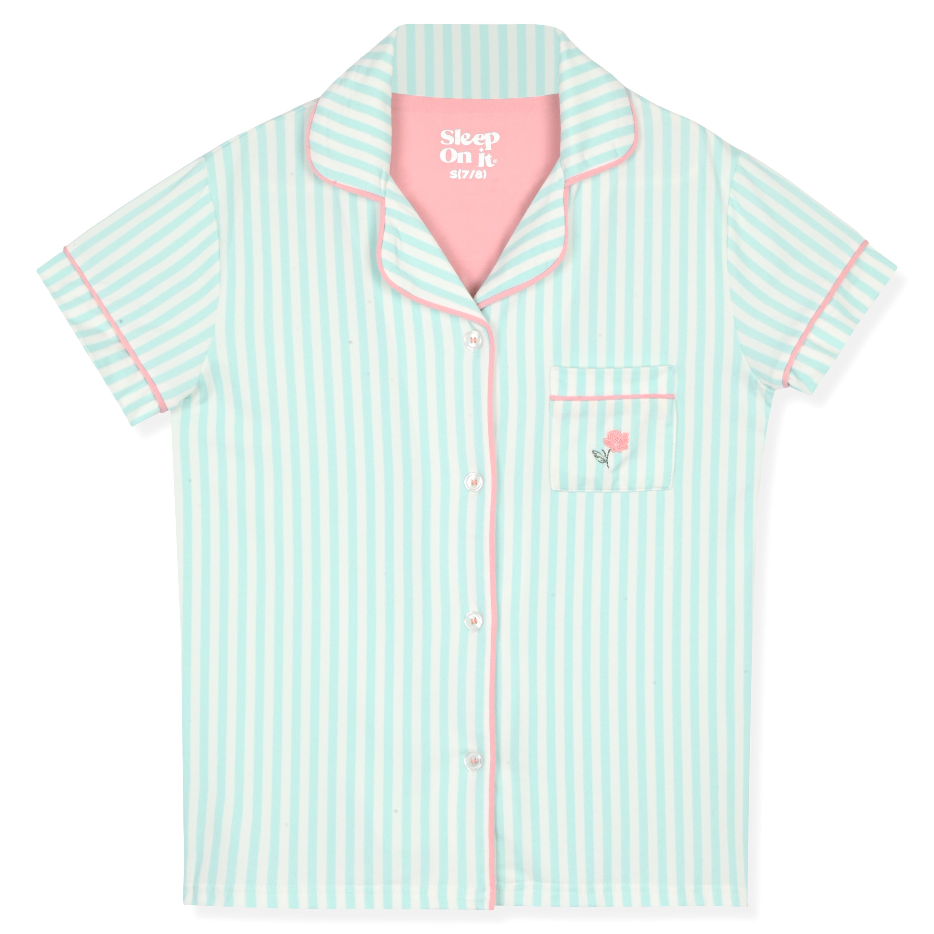 Drift into dreamy comfort with the Sleep On It Girls' 2-Piece Milky Jersey Pajama Set. Crafted from ultra-soft and silky milky jersey fabric, this set features a short-sleeve button-up pajama top and matching pajama pants, offering a cozy yet stylish bedtime look. Each set comes with a coordinating scrunchie, adding a fun and practical accessory to complete the ensemble. Designed with beautiful patterns like pastel foils, classic stripes, and delicate florals, this pajama set is perfect for relaxing in comfort and style !