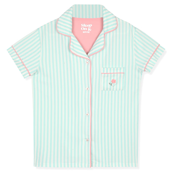 Sleep On It Girls Yummy Jersey Coat Front Pajama Short Set - Stripe