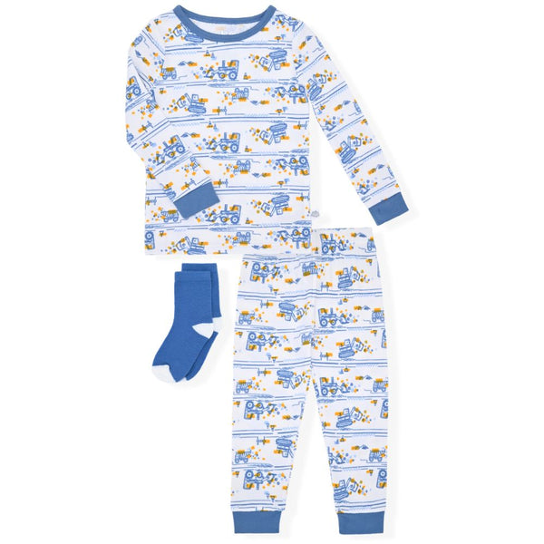 Sleep On It Infant & Toddler Boys 2-Piece Super Soft Jersey Snug-Fit Pajama Set with Matching Socks - Construction